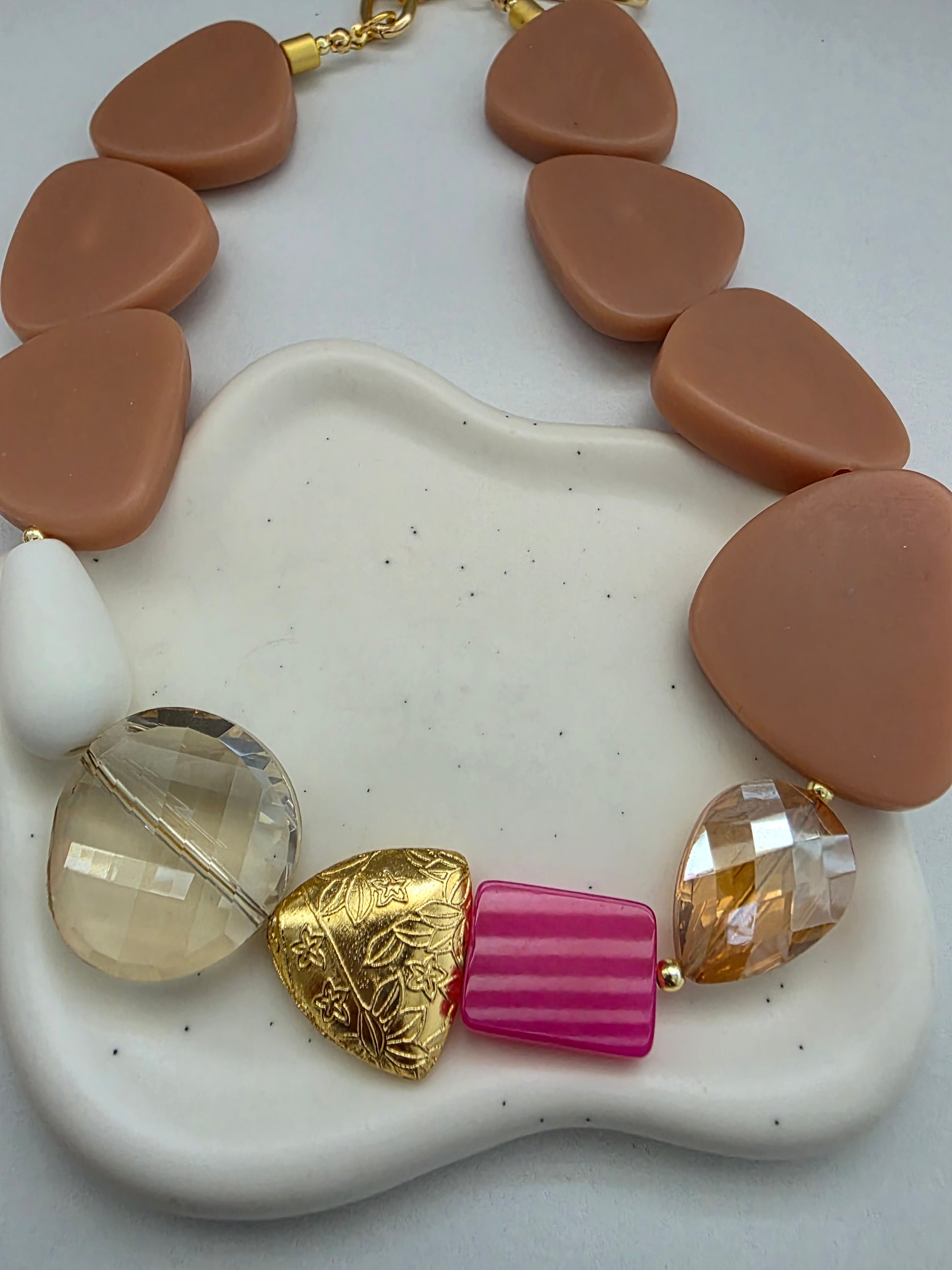 Choker en resina con detalles en cristal y gold plated 18k. Mide 17" con extension de 3"