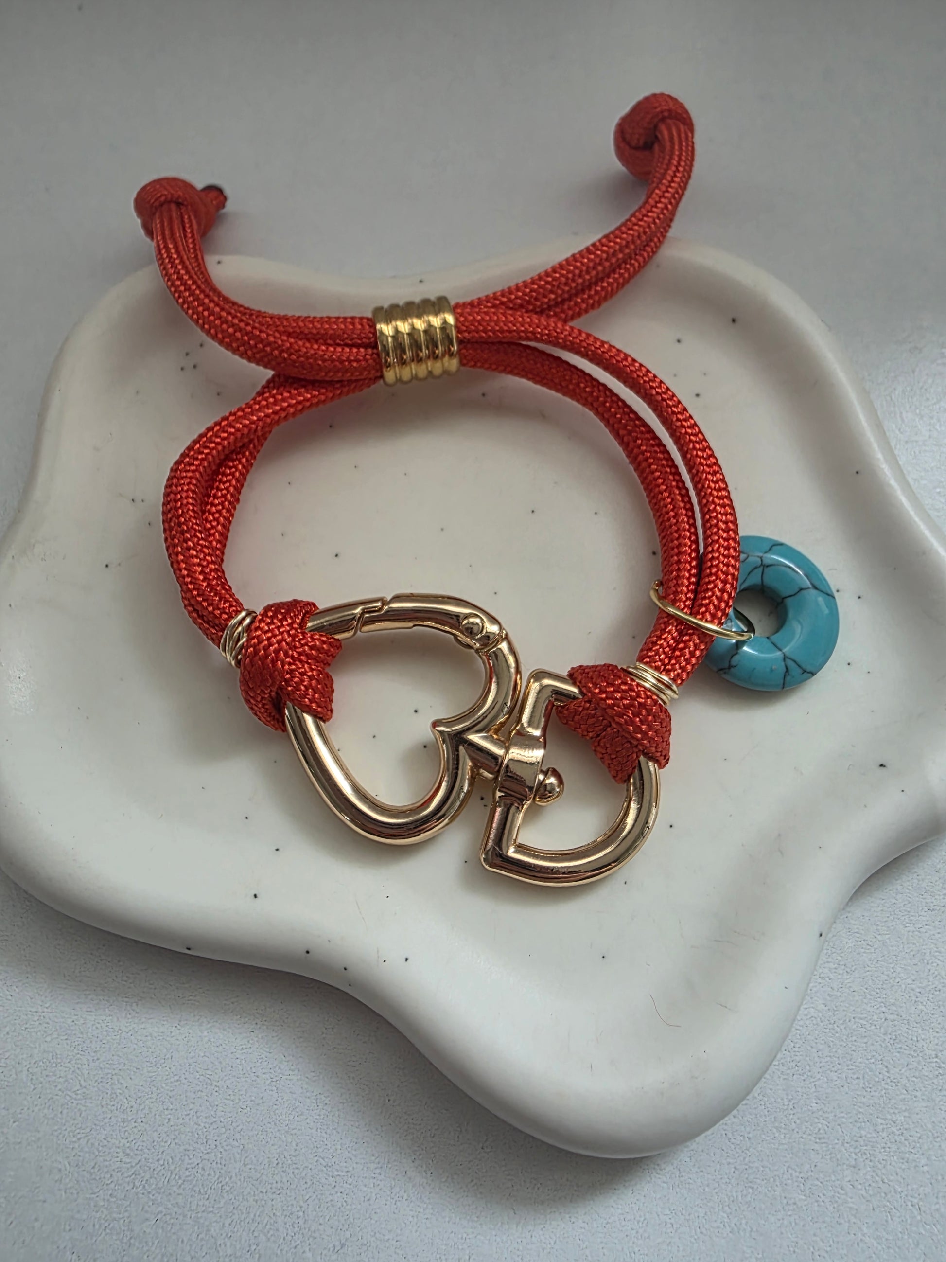Brazalete en paracord ajustable con detalle gold plated y charm de turqueza