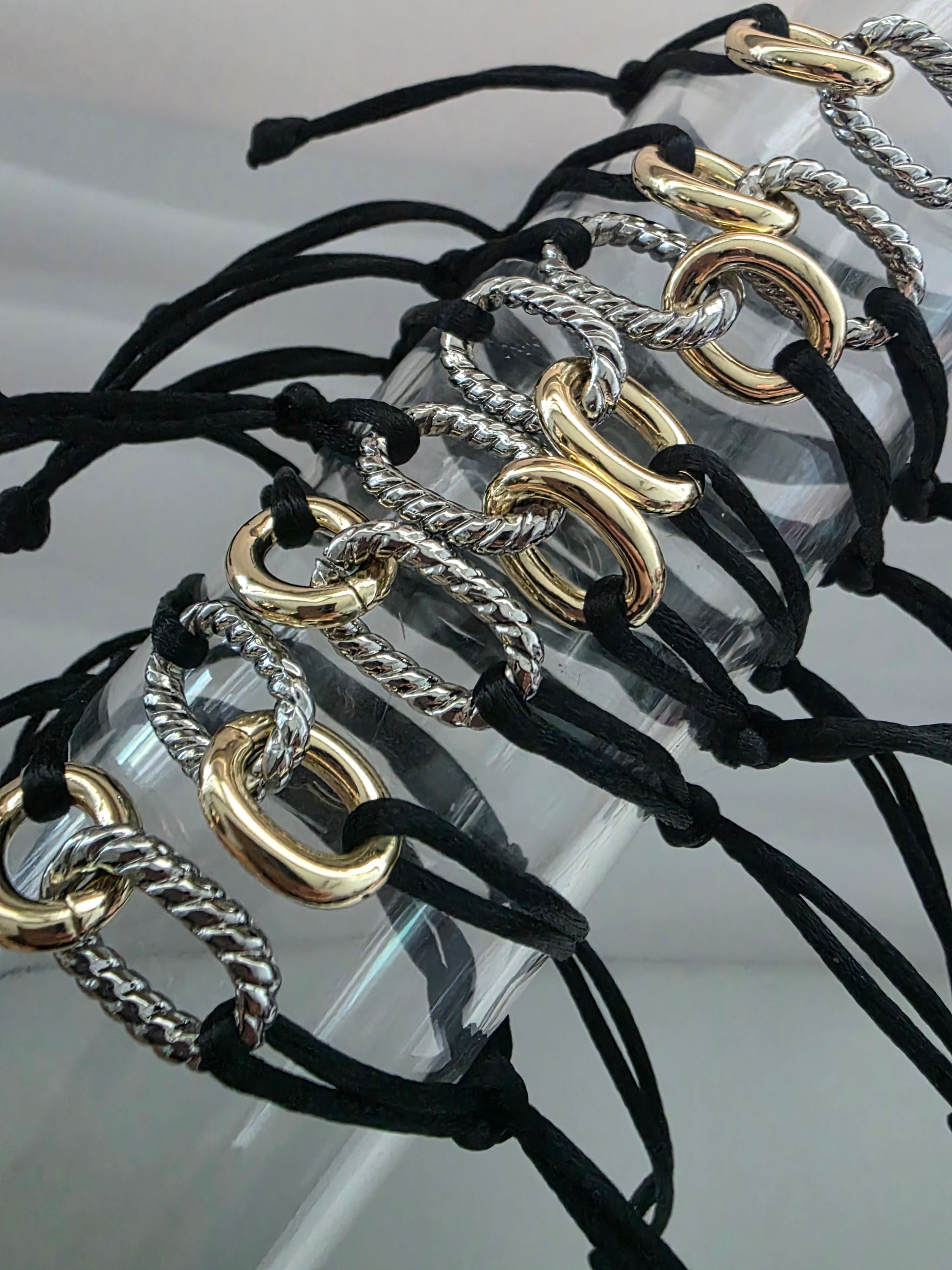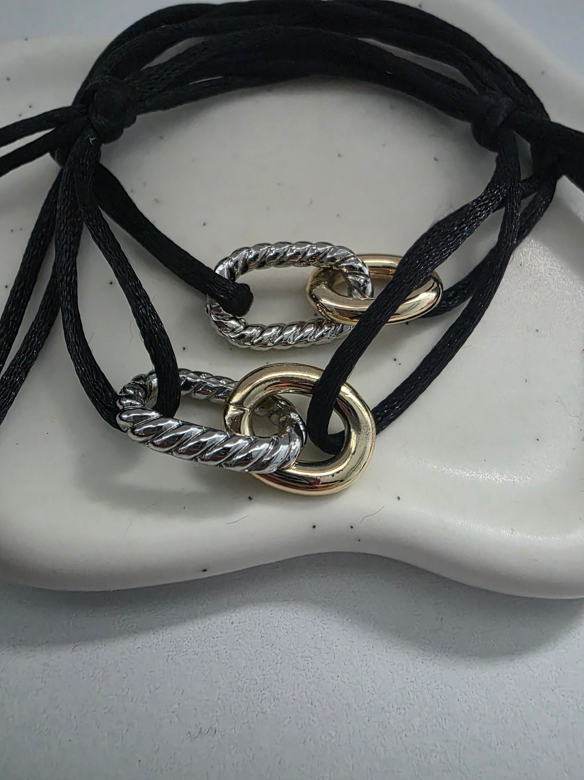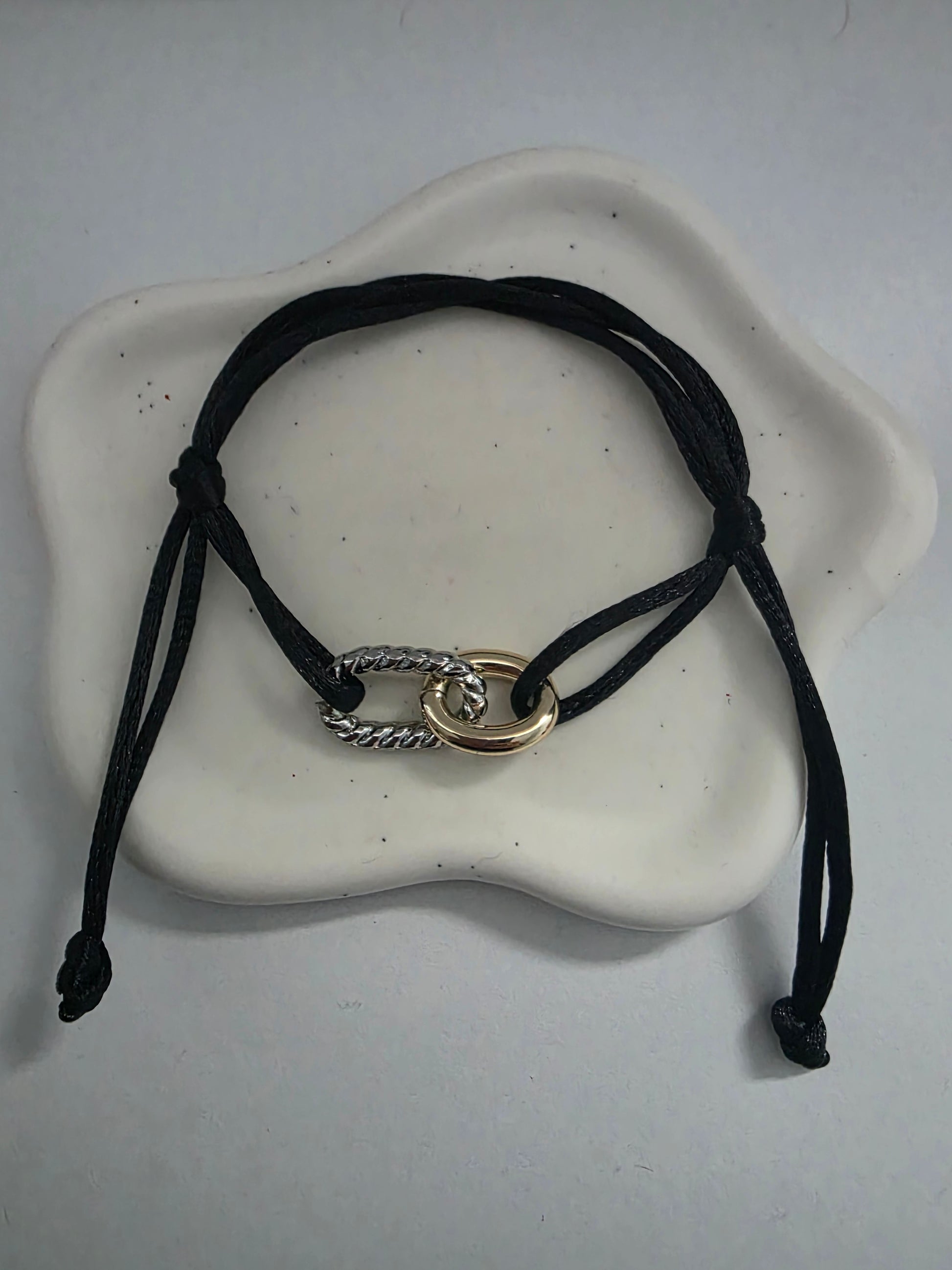 Brazalete ajustable en hilo con charm 2 tonos
