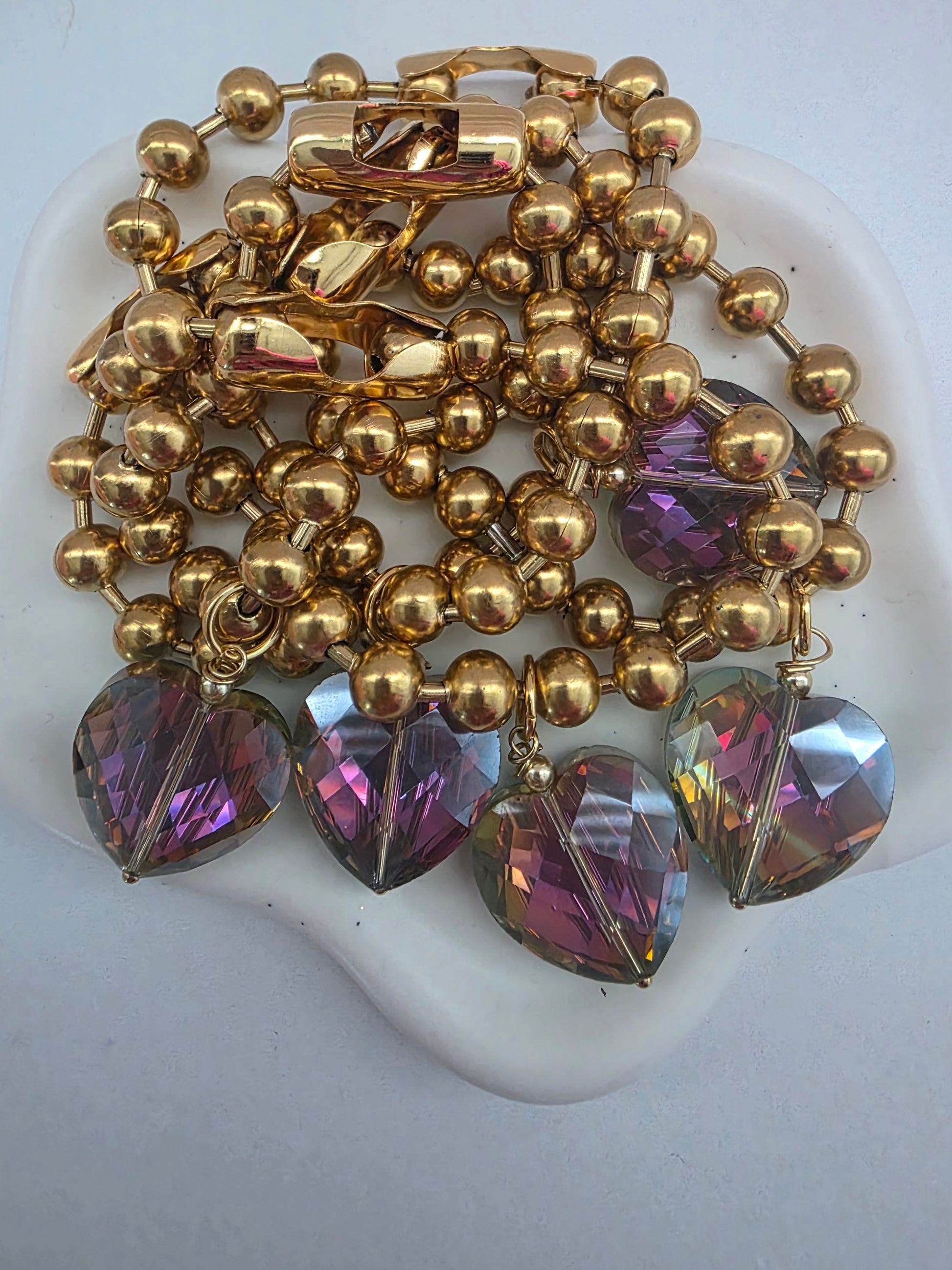 Army chain gold plated con charm de corazón en cristal tornasol.